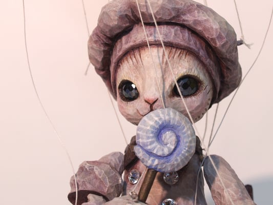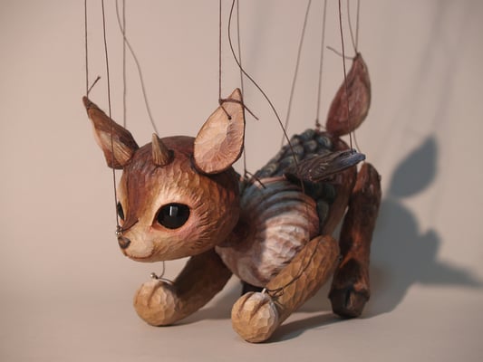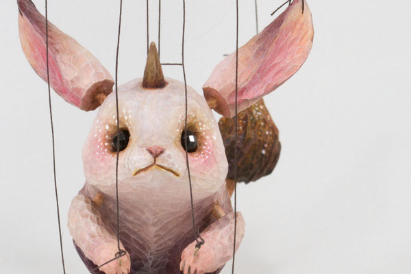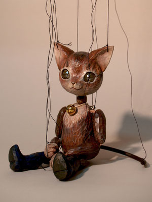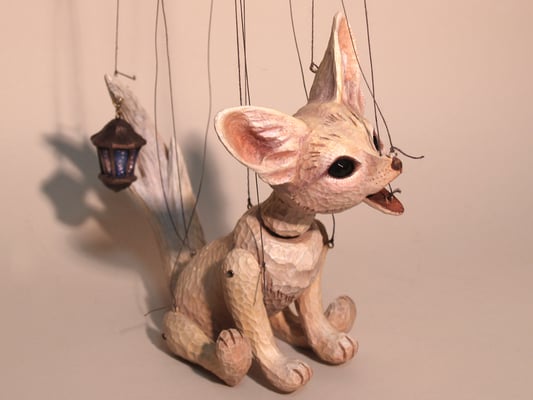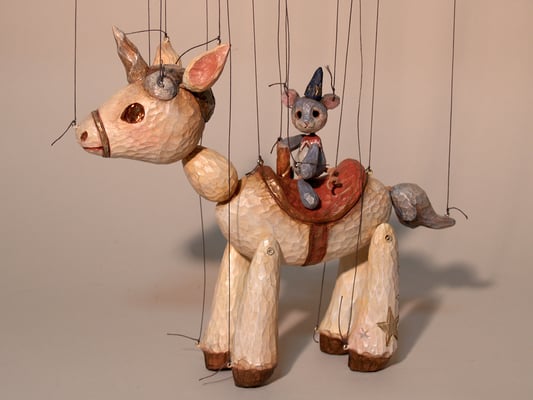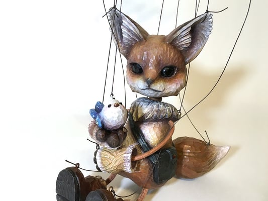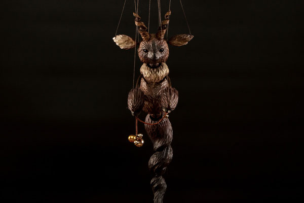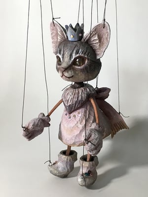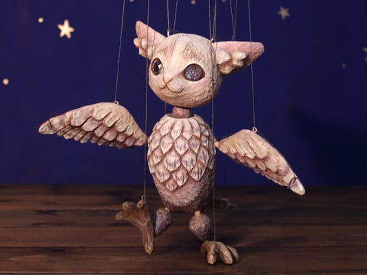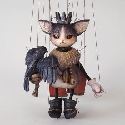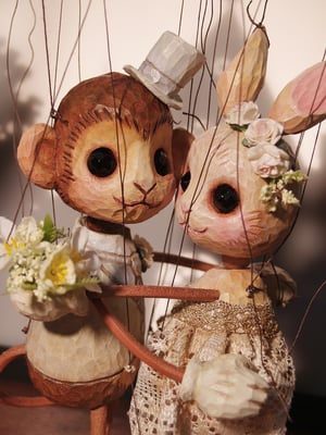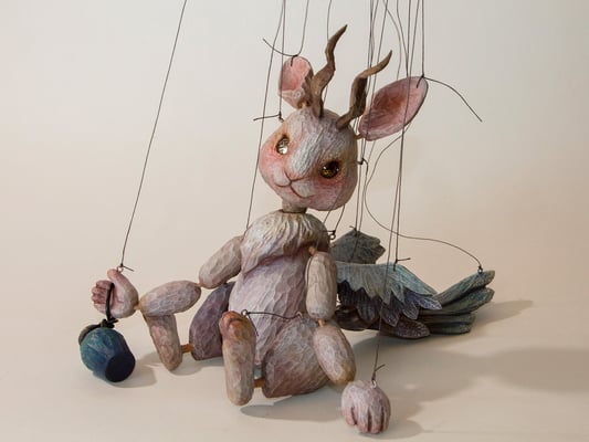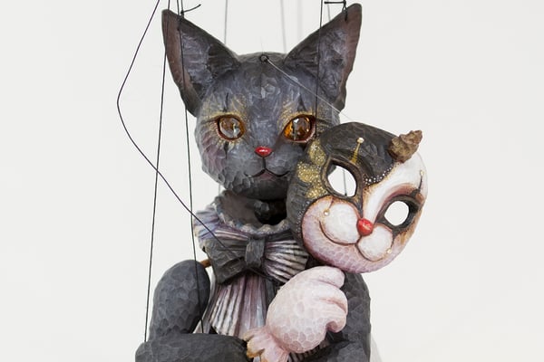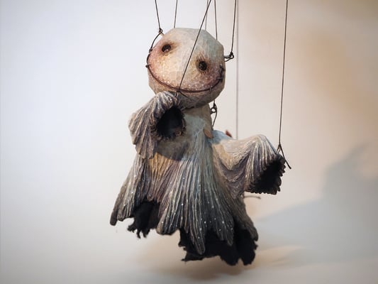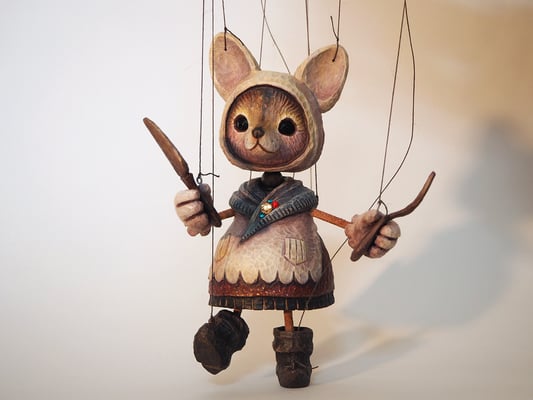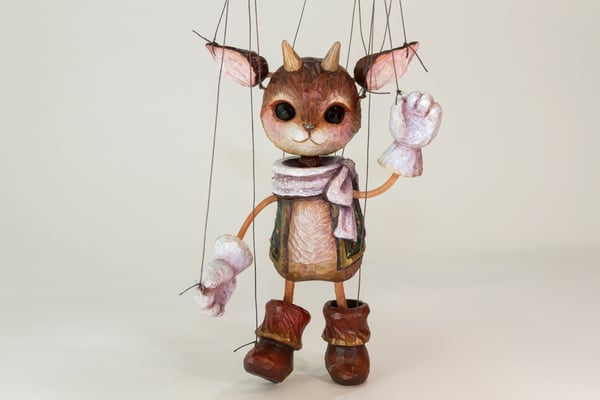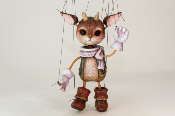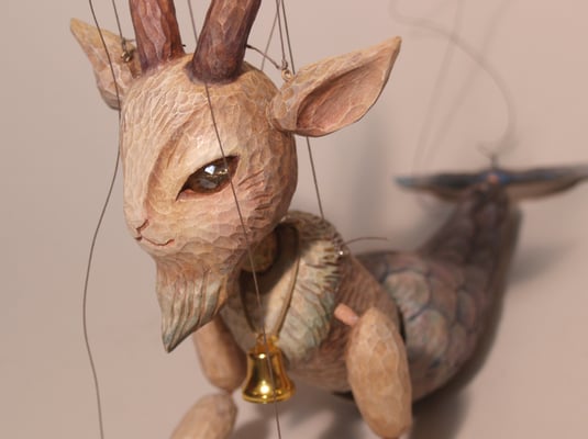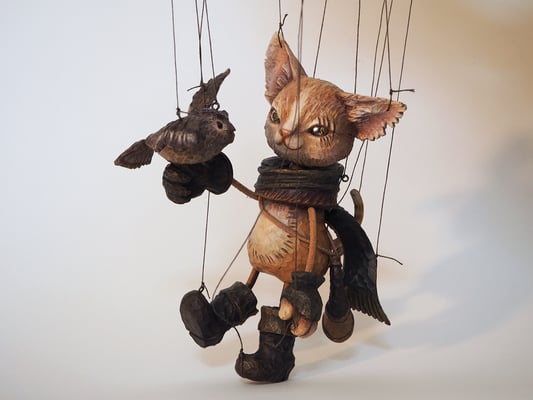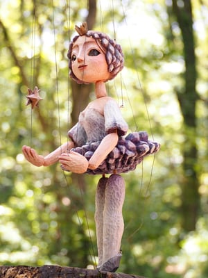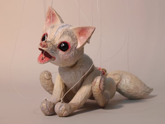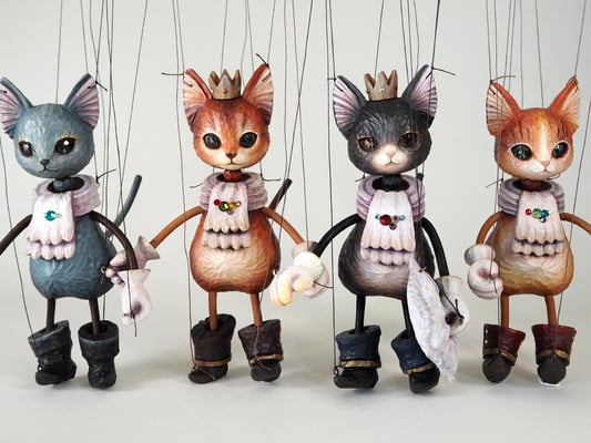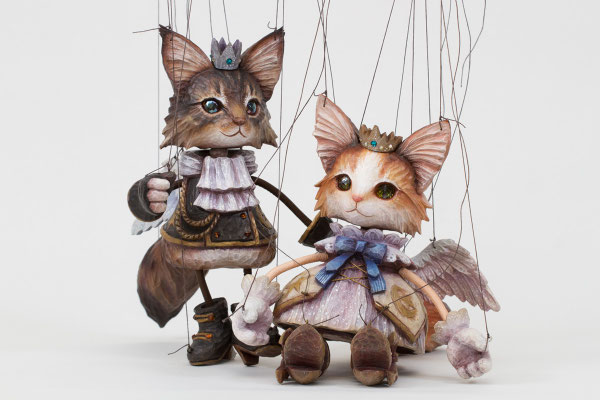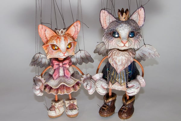 The works are made of wood. The eyes are made of natural stones or glass.You can see the marionettes in motion and behind-the-scenes footage on Instagram Reels.