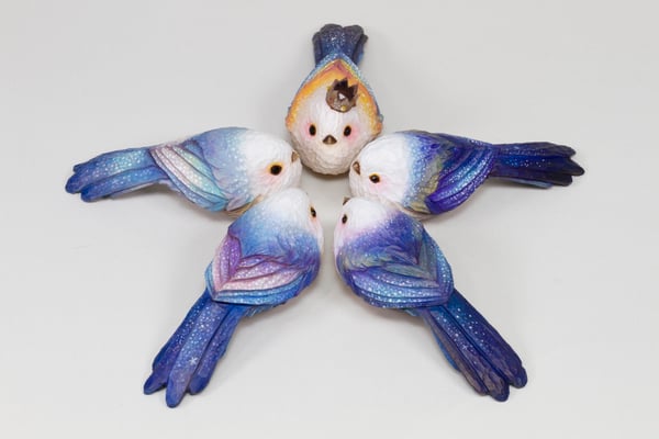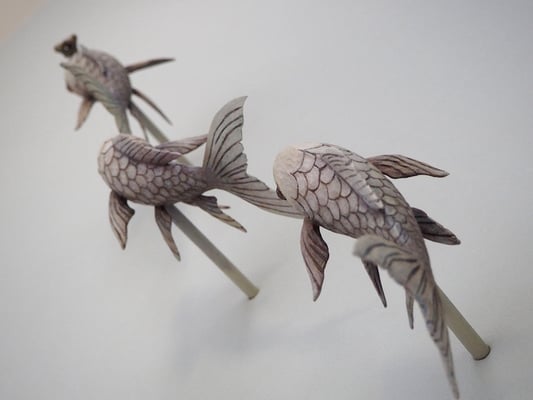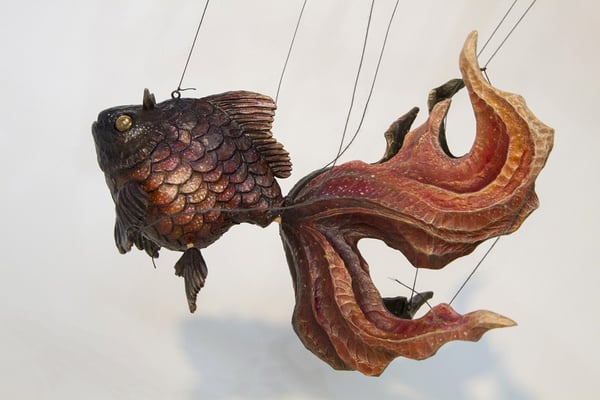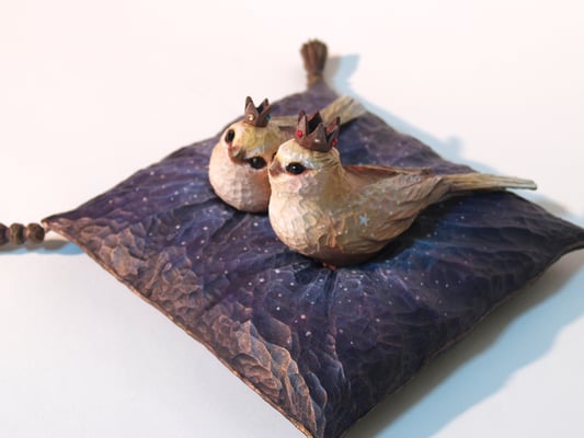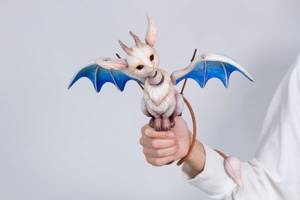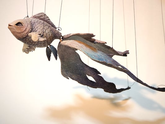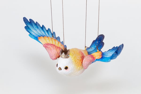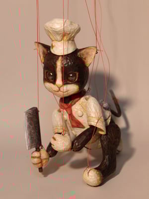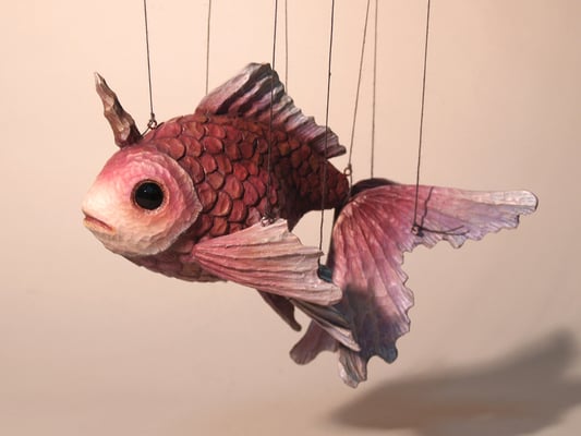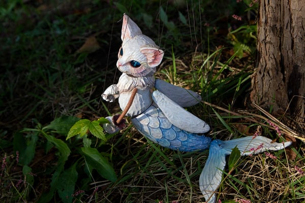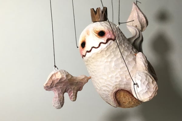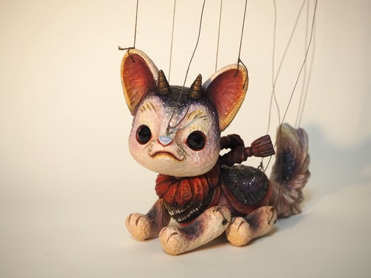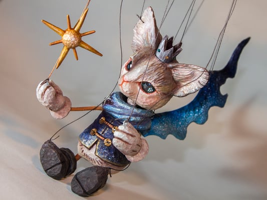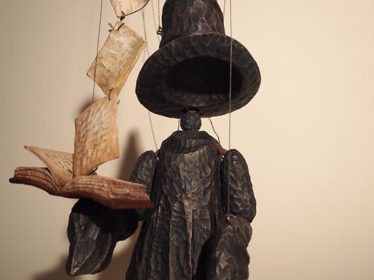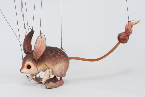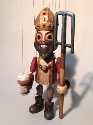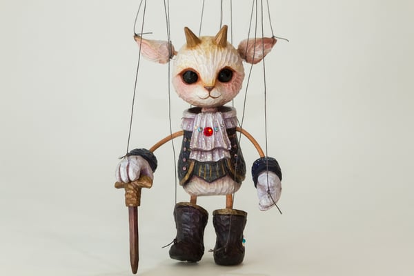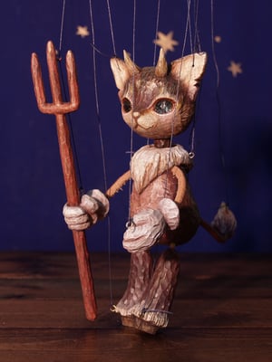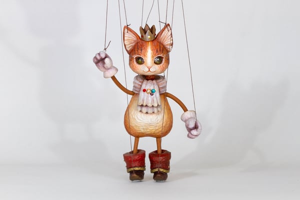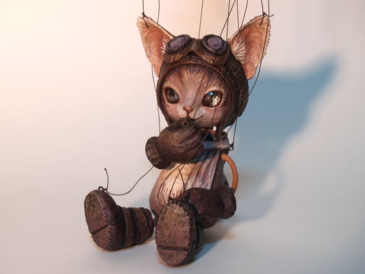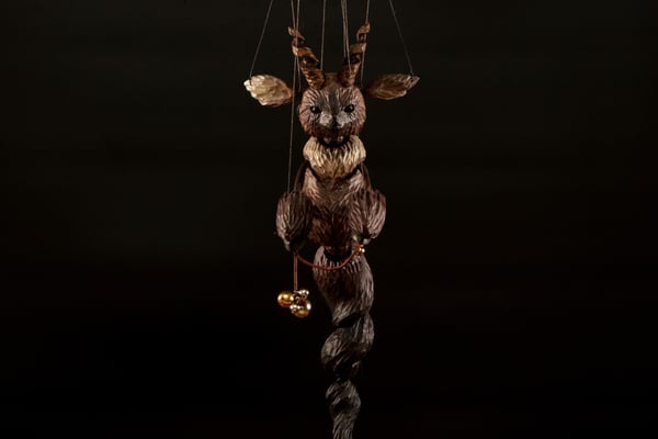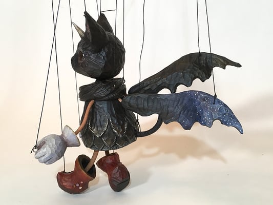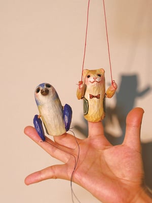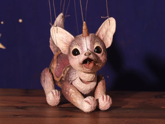 The works are made of wood. The eyes are made of natural stones or glass.You can see the marionettes in motion and behind-the-scenes footage on Instagram Reels.