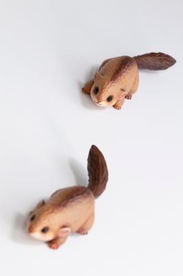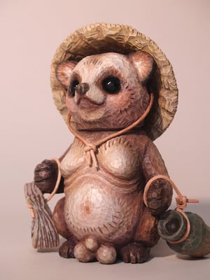 主な素材は木。瞳は天然石や硝子を使用しています。